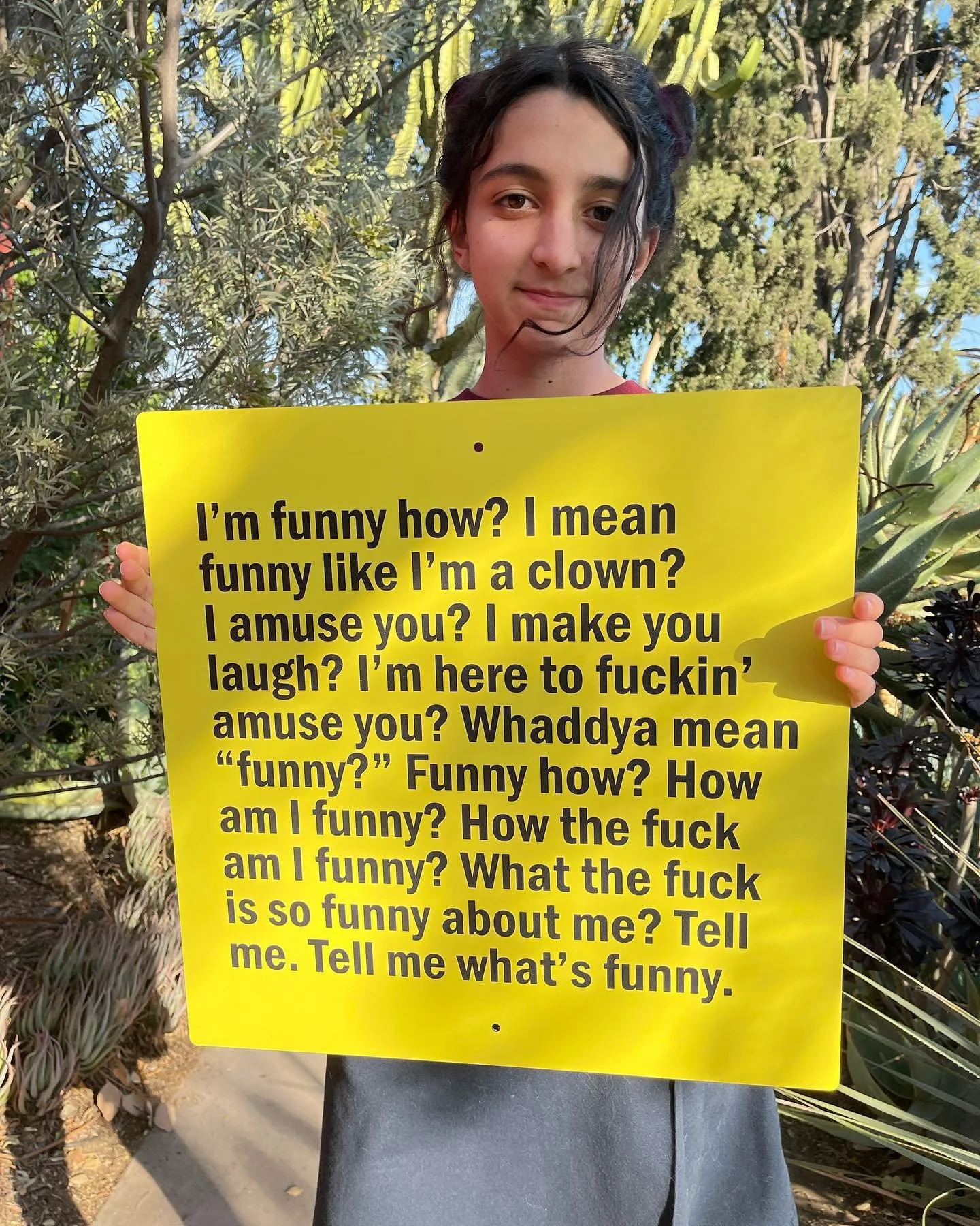 Why Have There Been No Great Italian Artists?, 2021, aluminum sign, 18 in. x 18 in.