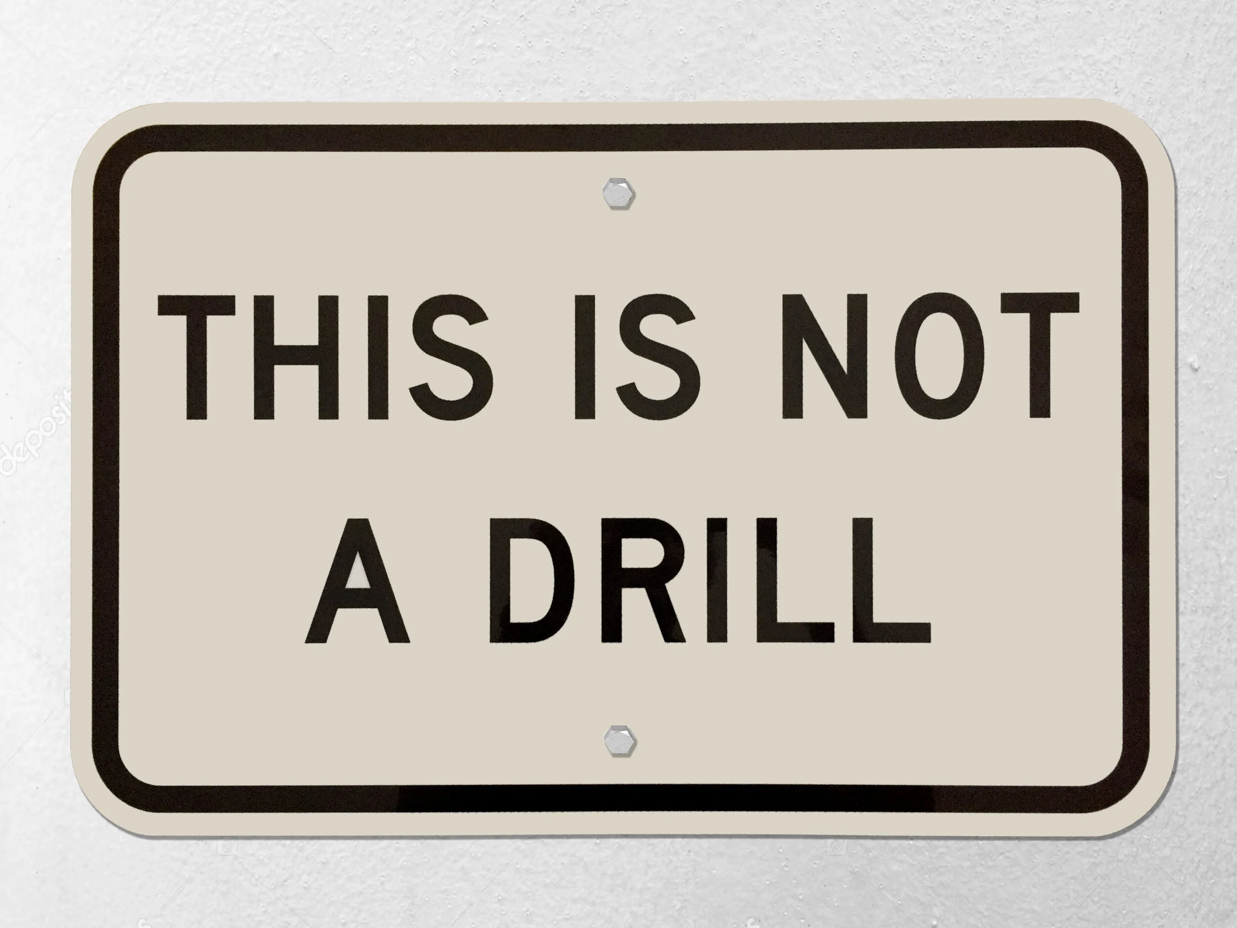 This is not a Drill, 2021, aluminum sign, 12 in. x 18 in.